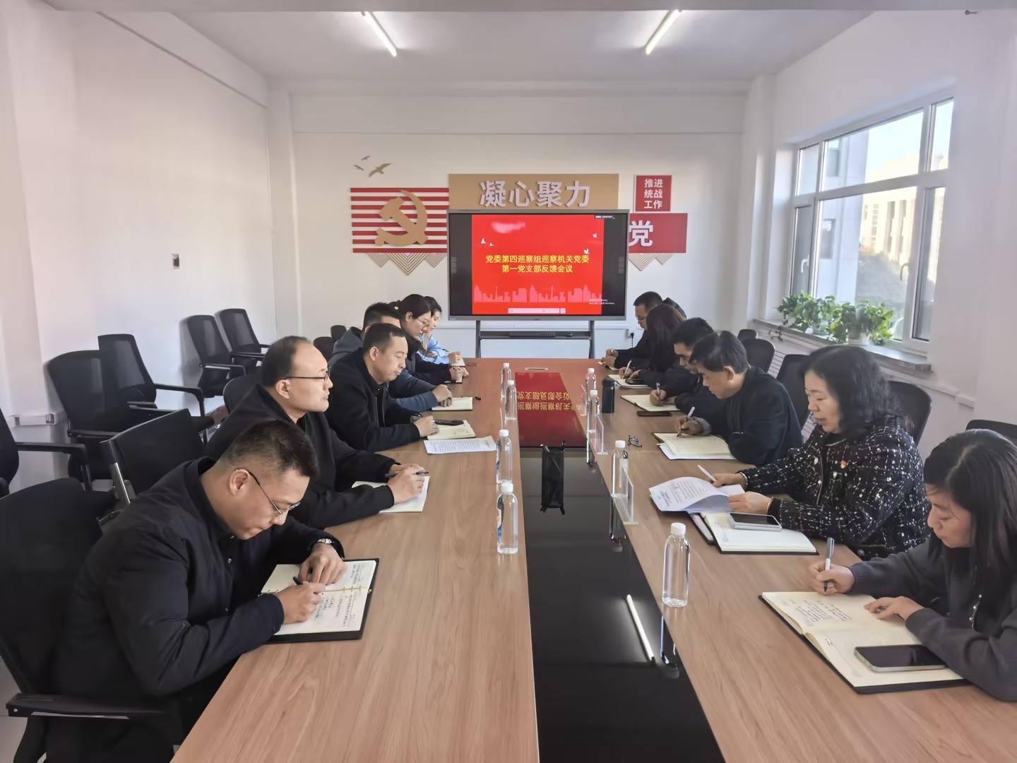 1月16日下午,学校党委第四巡察组巡察机关党委第一党支部反馈会议在3号教学楼310会议室召开。党委巡察工作领导小组成员邸长江、党委第四巡察组组长郭爽、党委第四巡察组全体成员以及机关党委第一党支部全体同志参加会议。会议由机关党委第一党支部书记张广宇主持。